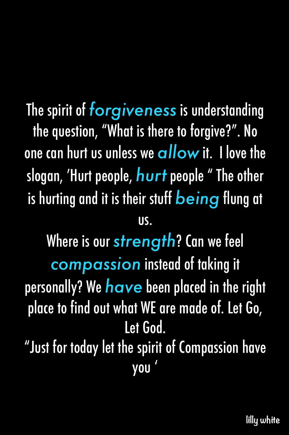 When Morgan ask,” how does this relates to forgiveness?” I reply, “if we do not take people, places or things personally, there is nothing to forgive”.
