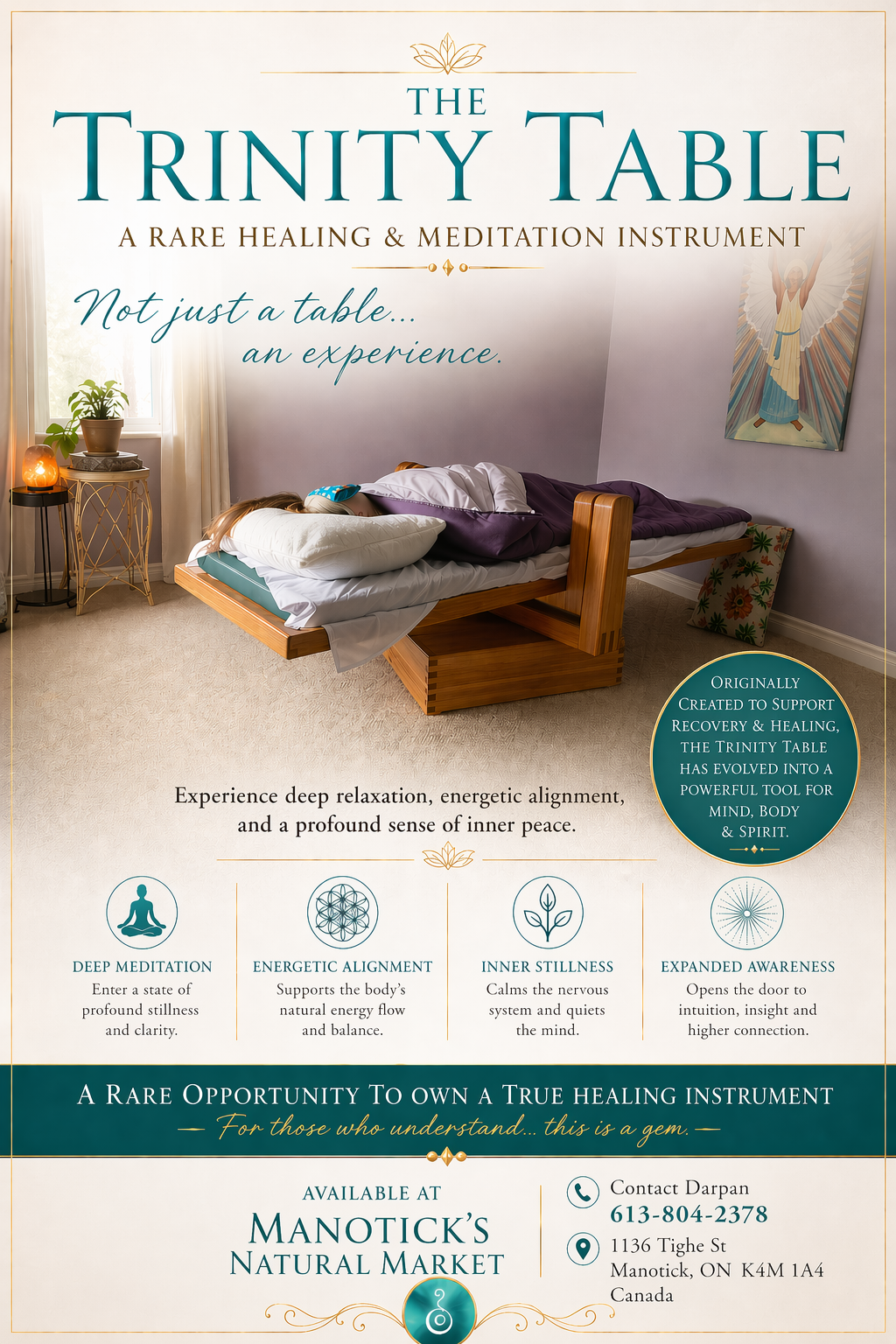 THE Trinity Table is now for sale . Are you starting a business? Wanting to experience inner peace ? Connect with Darpan at Manotick Natural Marker.